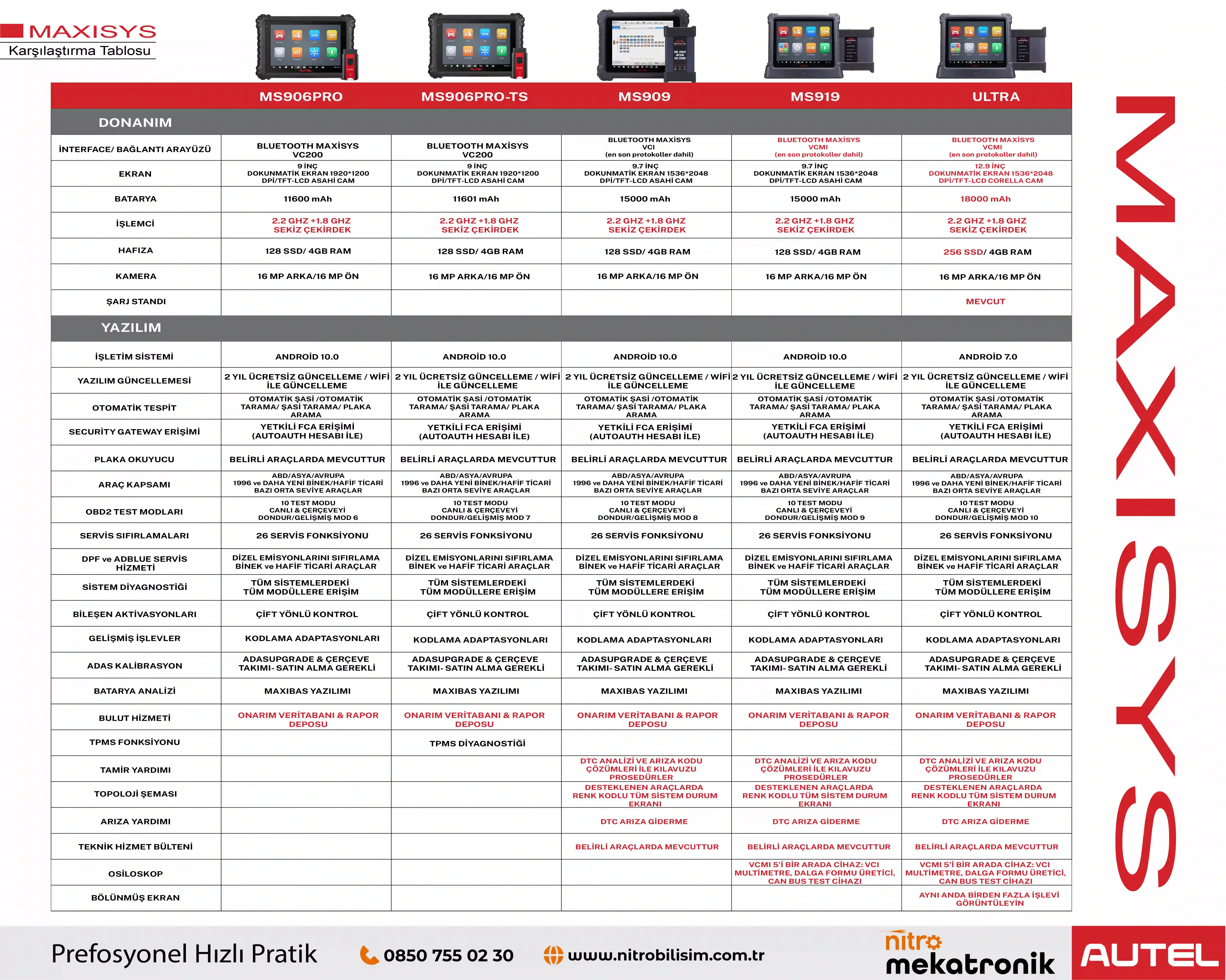 NOT : Autel MaxiSYS 906 Pro Arıza Tespit Cihazının yıllık 500 USD + KDV güncelleme ücreti bulunmaktadır.